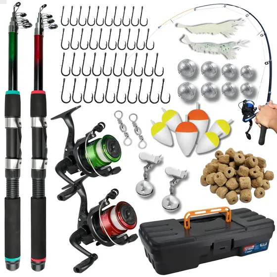 -33%Kit Pesca Completo 2 Varas Telescópica + 2 Molinetes + Iscas